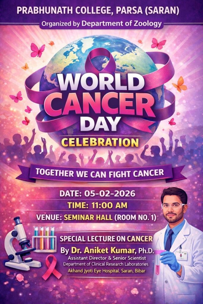 Celebration of World Cancer Day https://pncollegeparsa.com/celebration-of-world-cancer-day/ Fri, 06 Feb 2026 08:31:47 +0000 http://pncollegeparsa.com/?p=2275 प्रभुनाथ महाविद्यालय, परसा में कैंसर पर विशेष व्याख्यान का हुआ आयोजन